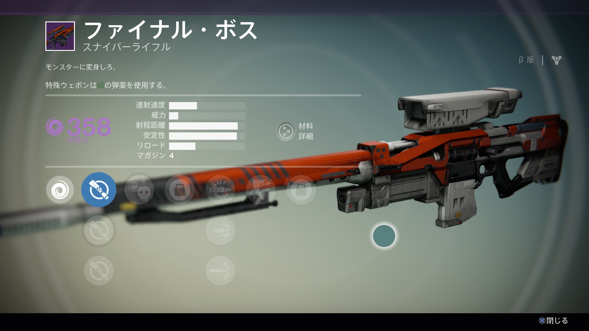 精密キルで爆破もあって射程もあるからいいよ。昨日、メンテ前にタイガーに行ったらBOSS戦で結局0キルのアシスト1でBOSSに攻撃をあててたぐらいなんだけど、来る前に誰かが出していたであろうレジェンダリーエングラムを拾い申し訳なく思っていたら中からこれが出てきた。 --