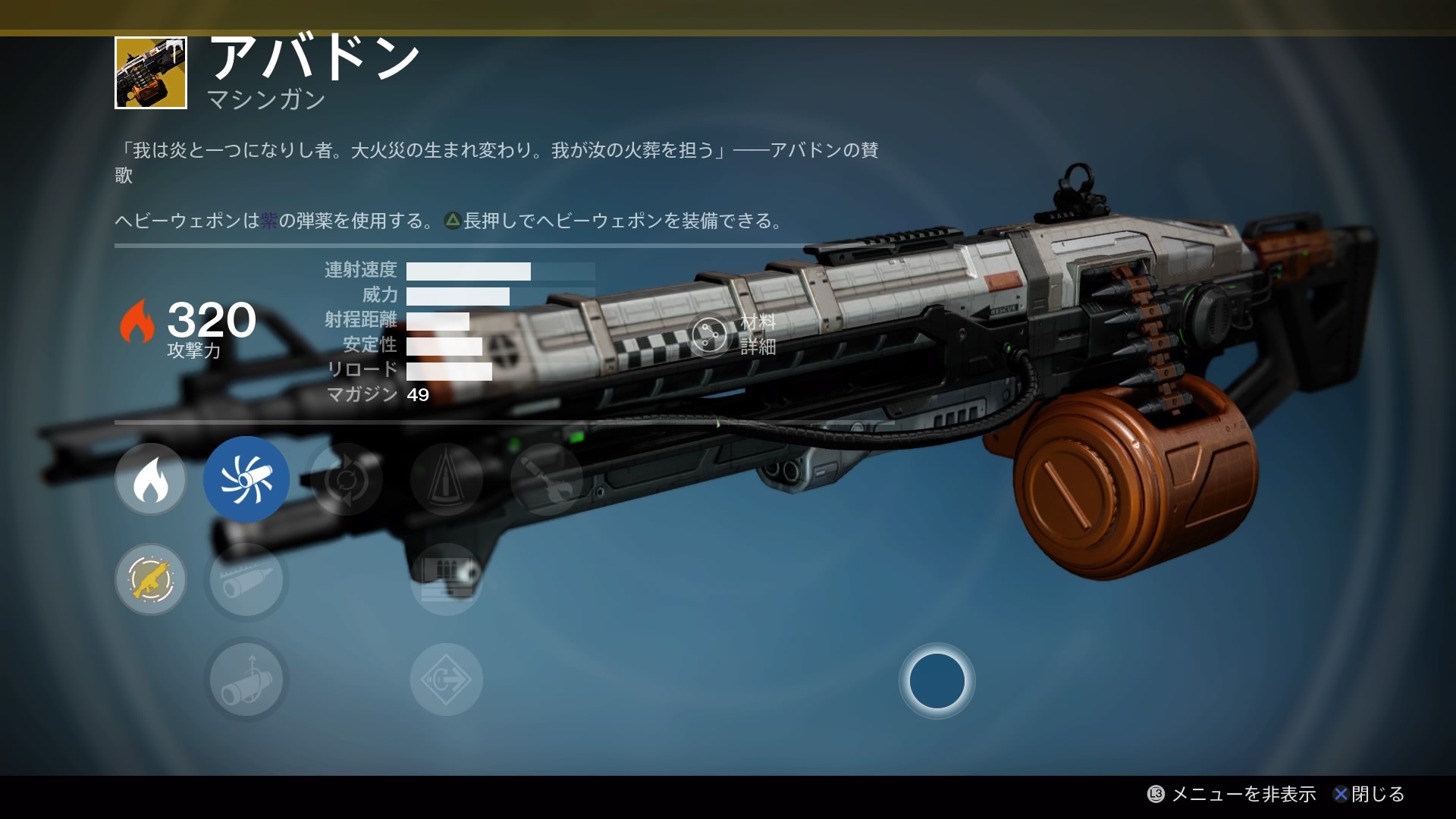 | 2特殊ウェポン | ショットガン | フュージョンライフル | スナイパーライフル | ピストル |