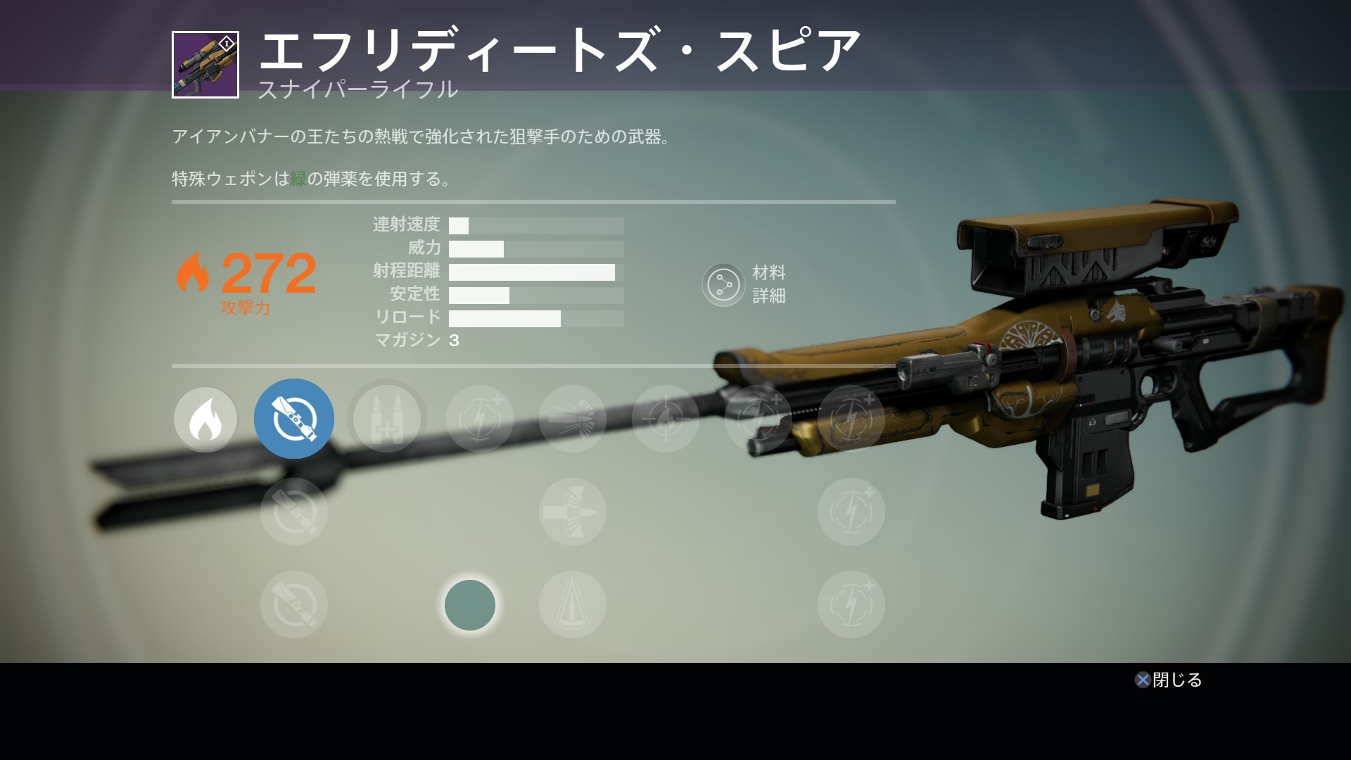 アイアンバナー担当官にてリフォージ(鍛え直し)が可能。 鍛え直した武器は属性とスキルがランダムで変更され、経験値が初期化される。