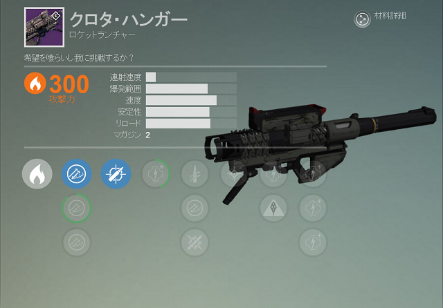やっと手に入れた。これハードでは出ないよな?そうであるなら欲しい人はノーマルクリアしてからハード行かなきゃな。しかし属性がソーラー以外なら尚良かったんだけどなぁ。 --