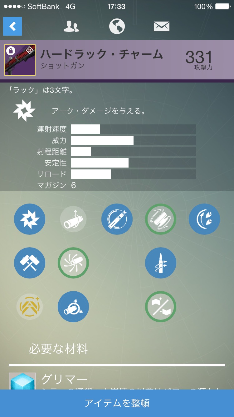 今日、かけら80個つぎ込んでアーク、フルオート、ニーパッド、補強バレルで厳選したところ失敗した。結果、アーク、螺旋構バレル、ニーパッドで止まった。螺旋構バレルでだいぶリロ束が落ちるけど、これPvEで使えるかな? エセリックで365に強化して35スコラスに担いでいくつもりなんだけど。リロ束遅いのが不安・・・ --