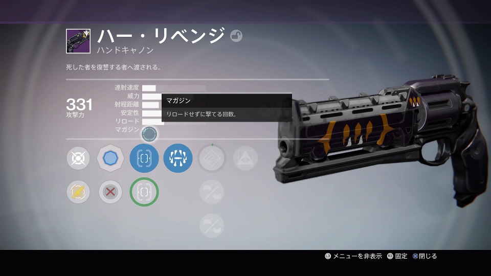 | 2特殊ウェポン | ショットガン | フュージョンライフル | スナイパーライフル | ピストル |