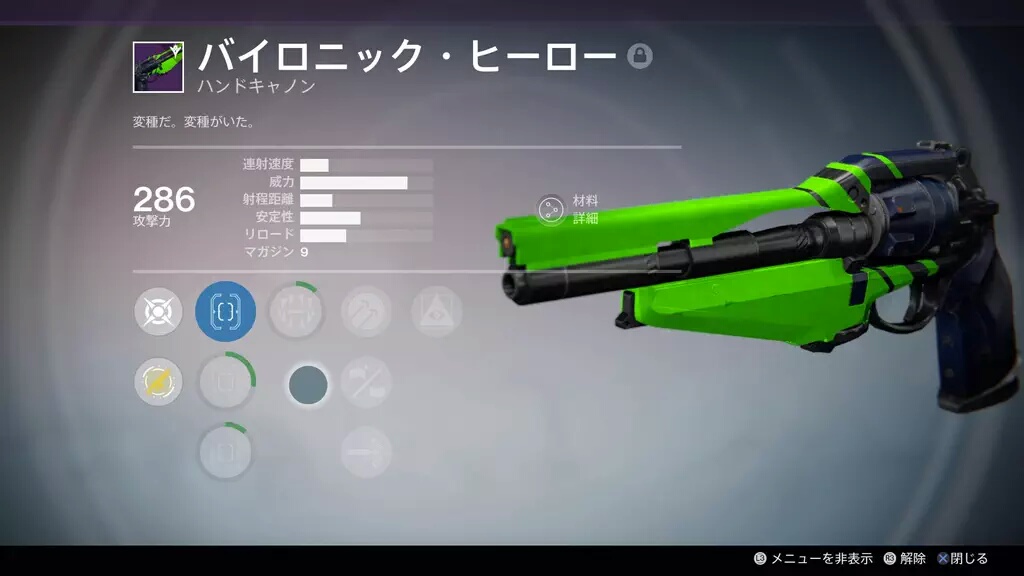 ハンドキャノンでリロード速度upは総じて当たりでしょ。ただアウトローと炸裂は相性がやや悪いけど…。グレネーダーはvEで強い --