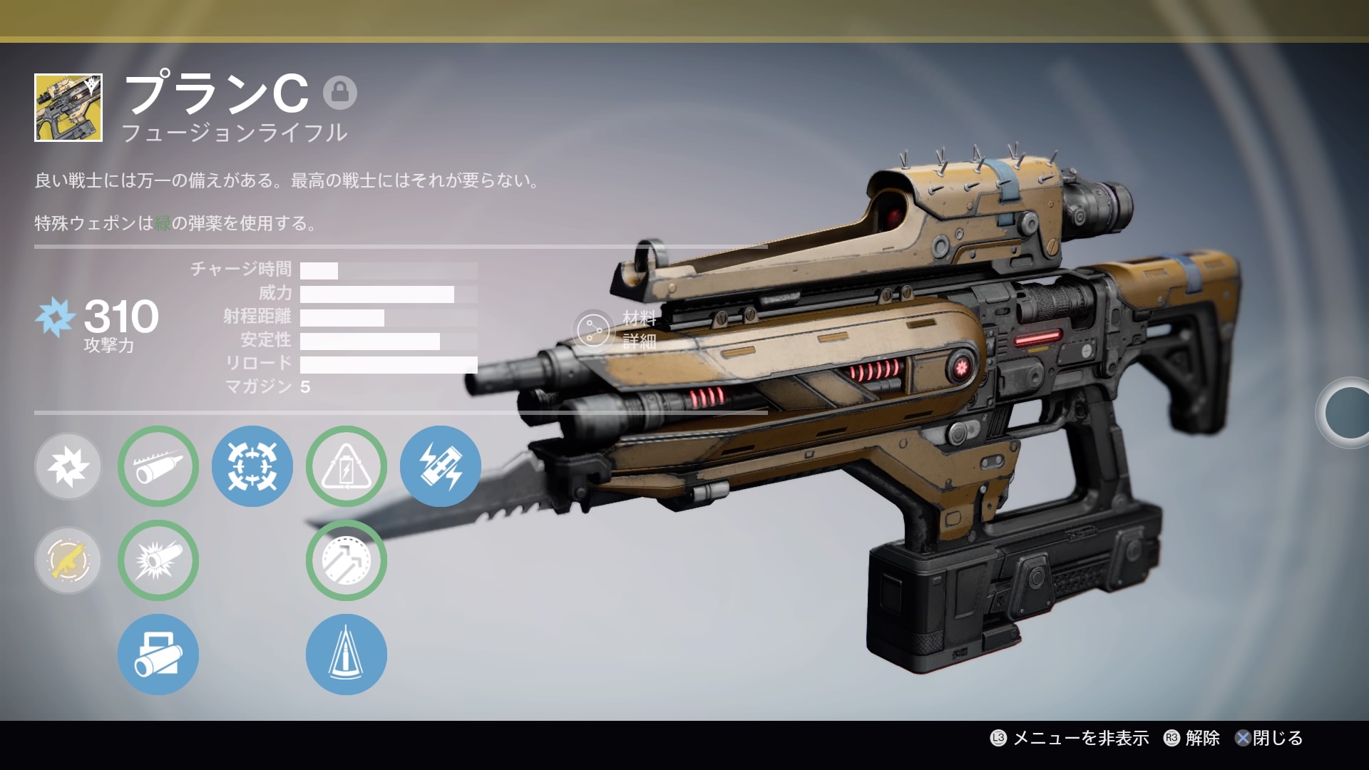 | 2特殊ウェポン | ショットガン | フュージョンライフル | スナイパーライフル | ピストル |