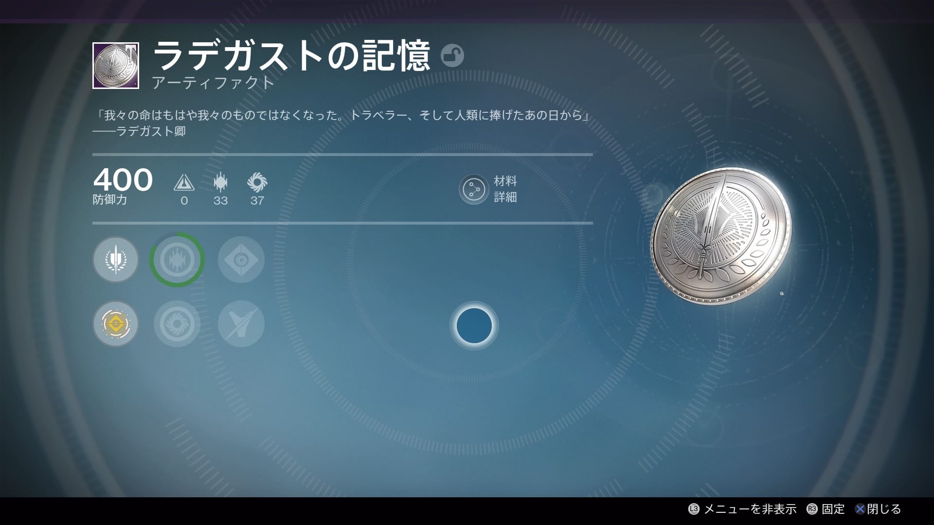 | ラデガストの忠義 | 剣で防御している時、飛んでくるエネルギー弾を跳ね返すことができる。剣の使用回数を増やす。 |
