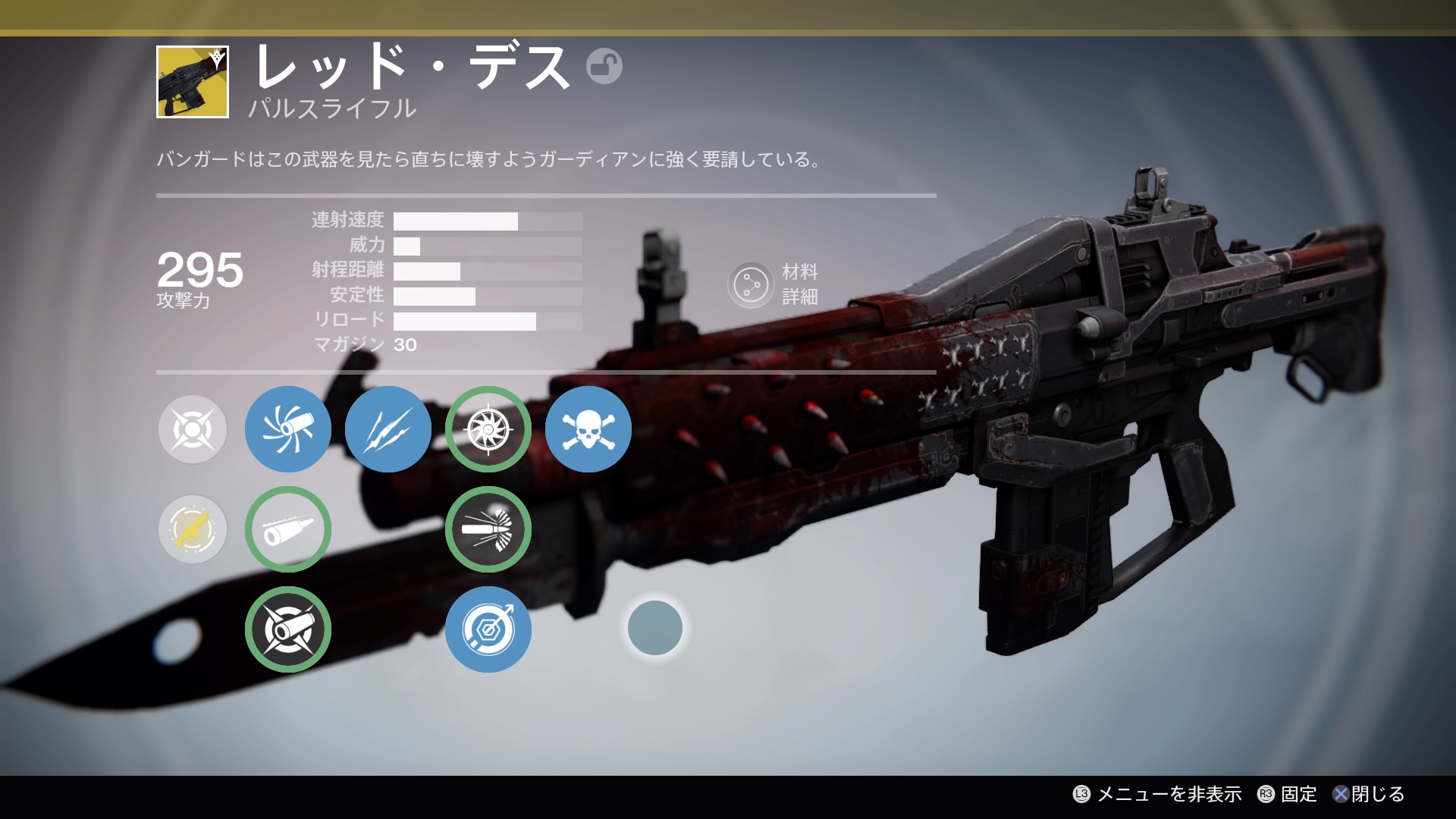 | キネティック・ダメージ | 高精度バリスティクス | 屈強 | スナップショット | レッド・デス |