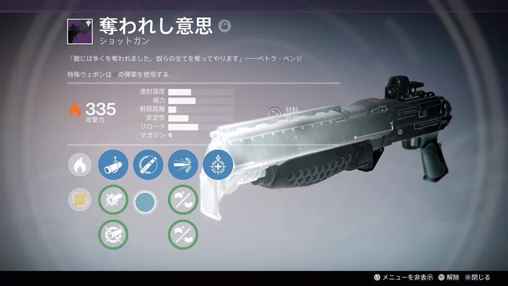 | 2特殊ウェポン | ショットガン | フュージョンライフル | スナイパーライフル | ピストル |