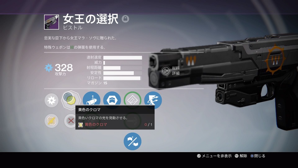 | 2特殊ウェポン | ショットガン | フュージョンライフル | スナイパーライフル | ピストル |