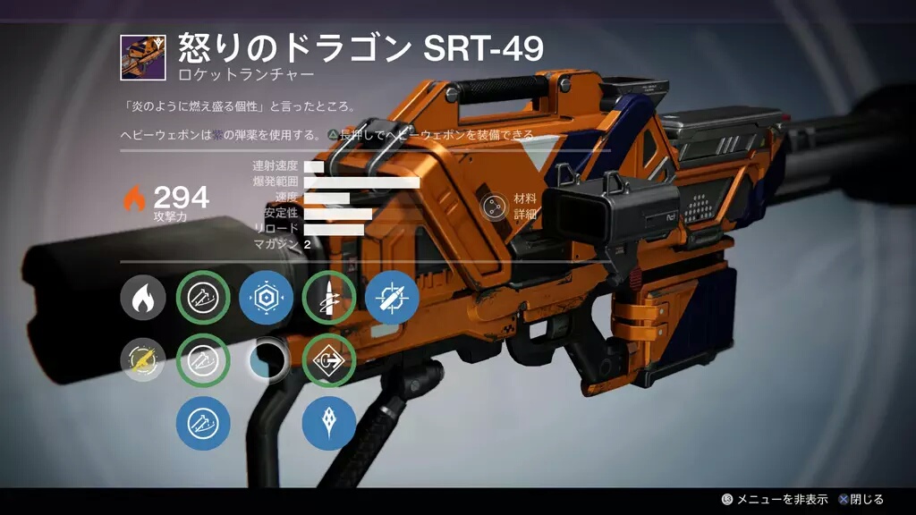 これに光の意志が付いたのゲットした。レイド武器以外でも付くんだな --