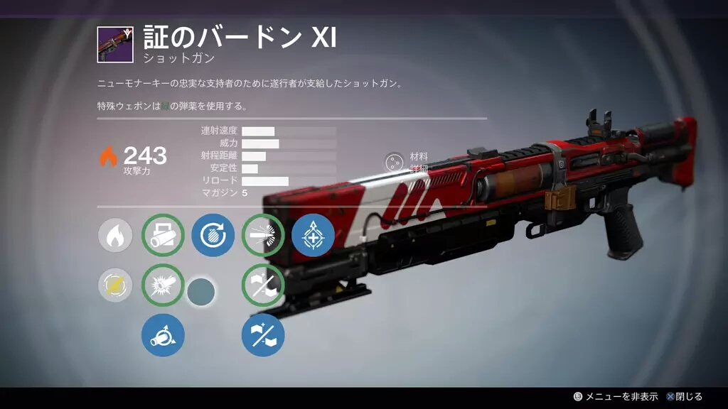 今の店売りが良さげだったから買ってみたけど、持ち代えの速さ、ハンドリングの軽さなどの扱い易さは陰謀説より遥かに優れてる ただやはり確殺距離は陰謀説の方が体感でわかるくらい長いし、アクブレを近接と合わせても殺しきれないシーンもあったりしたけど、個人的にはかなり満足な性能 --