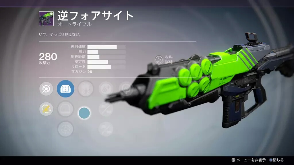 リフレックス+カウンターバランス+射程OP+持続性を愛用しているが、勢いで310まで強化してしまった。終始、弾切れ無く土星レイドで使えたので、無理してスカウトを使う必要は無いのかもしれない。 --