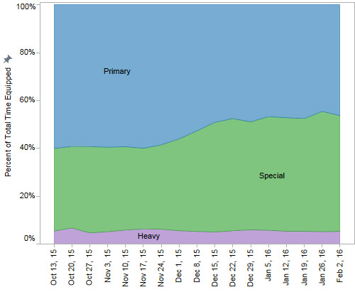 Bungieが公開した「クルーシブルにおける弾薬使用率の推移」。特殊ウェポンの弾薬が多くを占めている事が分かる。