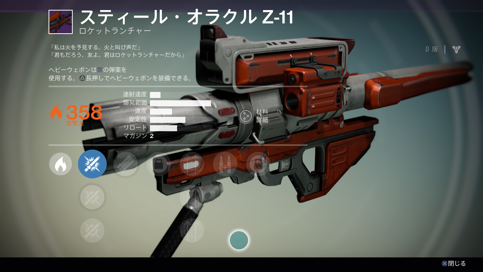 スキルでマガジンに3発装填できるようになる3連射可能なロケラン。とりあえず使ってて楽しい。 --