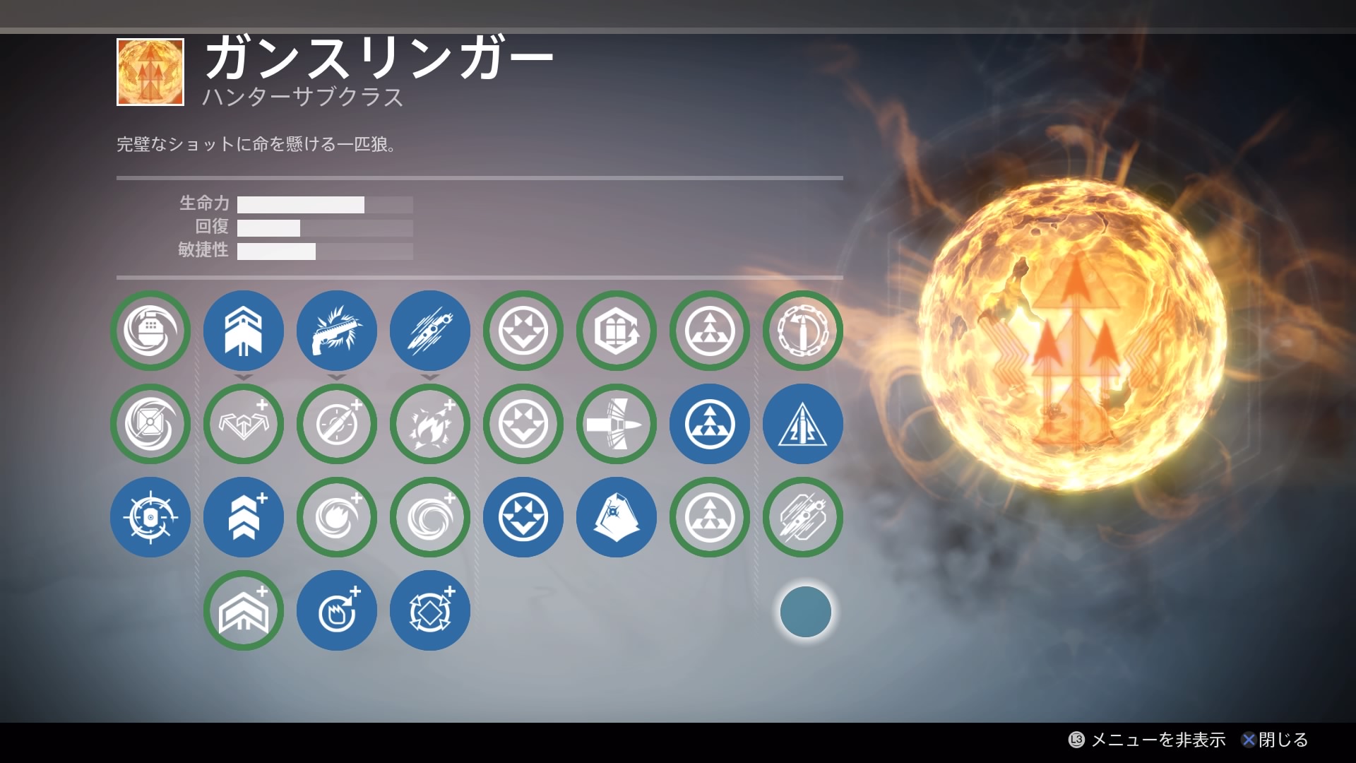 ハンターサブクラス「完璧なショットに命を懸ける一匹狼。」 スキル表