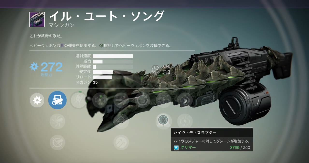 ダーク・ブレーカー:投擲物がハイヴ・ナイトの暗黒の壁を突き破る。 表示の不具合でマガジン35発とあるが、実際に装備するとマガジンは87発である。