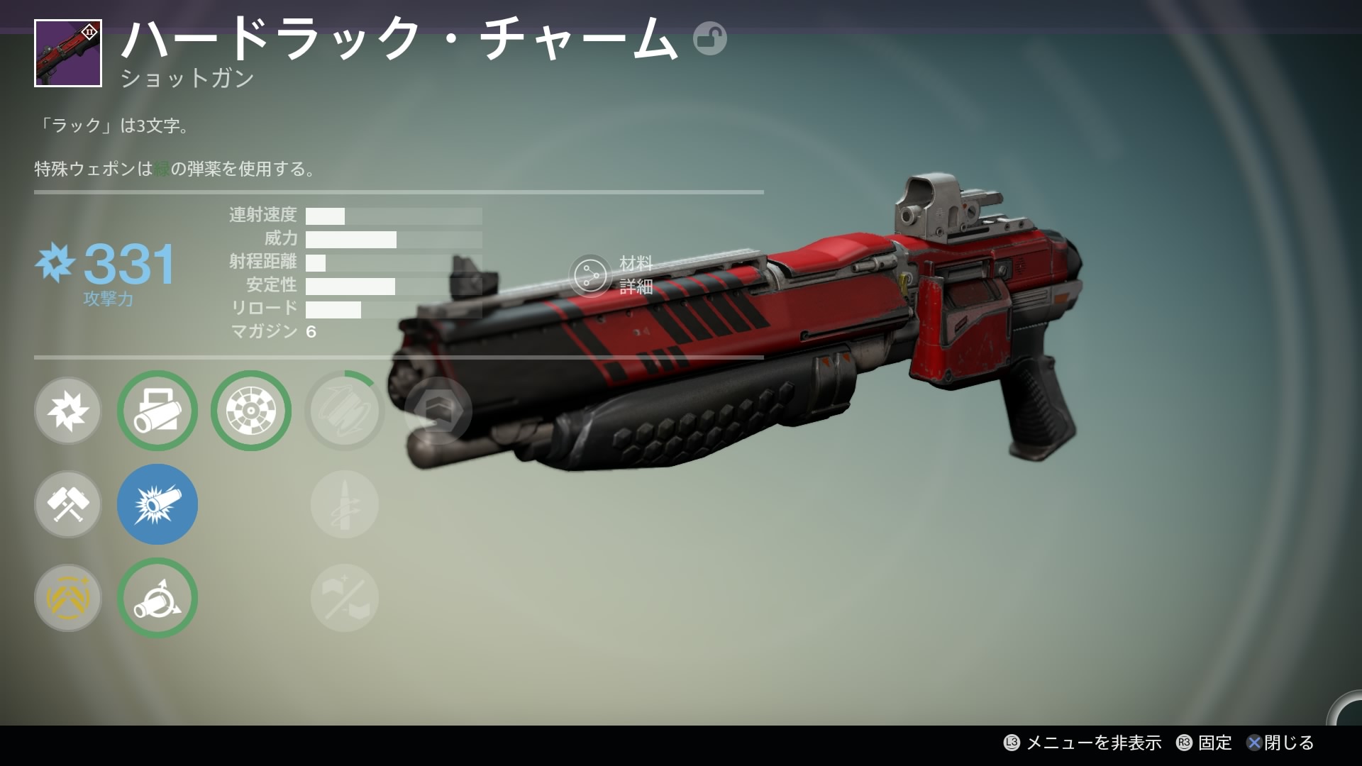 今日、かけら80個つぎ込んでアーク、フルオート、ニーパッド、補強バレルで厳選したところ失敗した。結果、アーク、螺旋構バレル、ニーパッドで止まった。螺旋構バレルでだいぶリロ束が落ちるけど、これPvEで使えるかな? エセリックで365に強化して35スコラスに担いでいくつもりなんだけど。リロ束遅いのが不安・・・ --