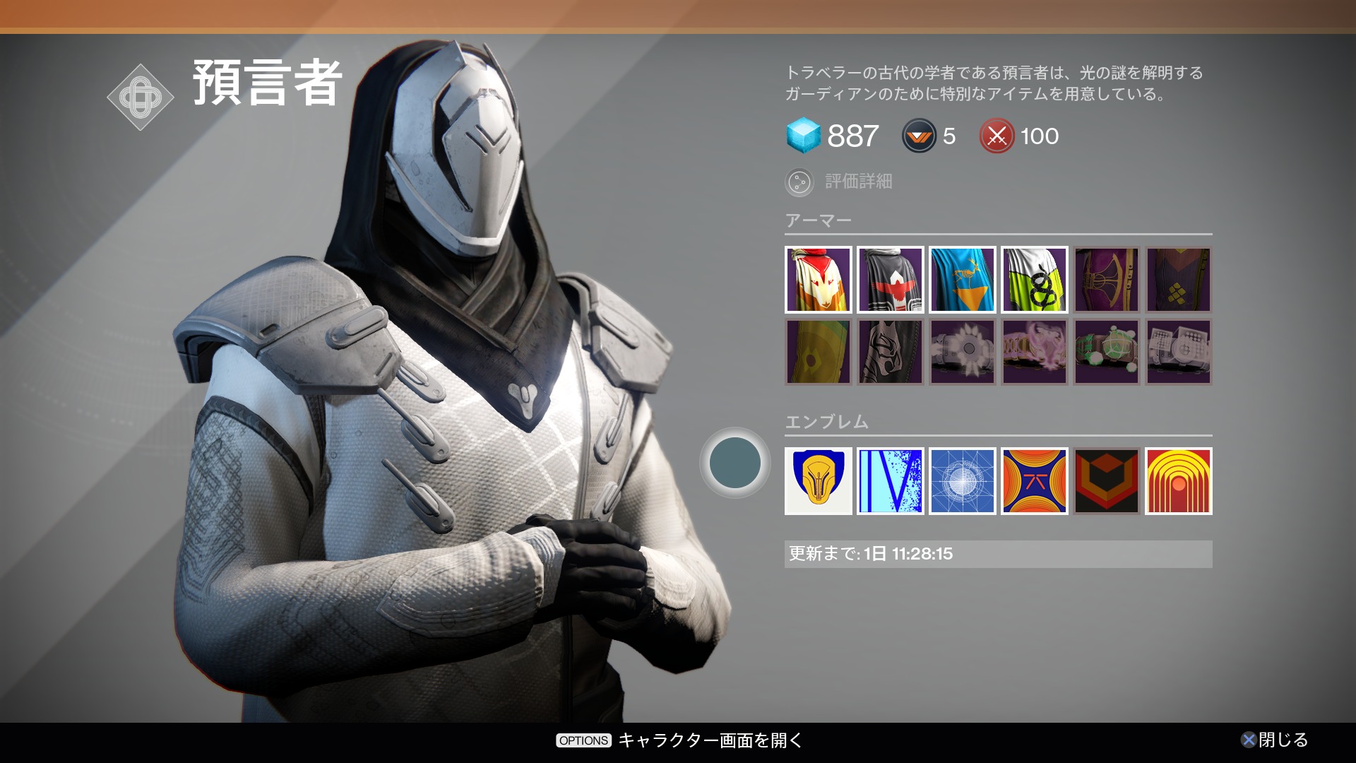 トラベラー、ゴーストと謎めいた強いつながりを持つ名も無なき高僧として、予言者という存在は常にあった。シティの何世紀にも渡る歴史において、預言者の偉大なる使命が変わったことはない――預言者はいつも新たなガーディアンを導き、トラベラーを癒し、我々の守護者を眠りから覚ましてくれる。
