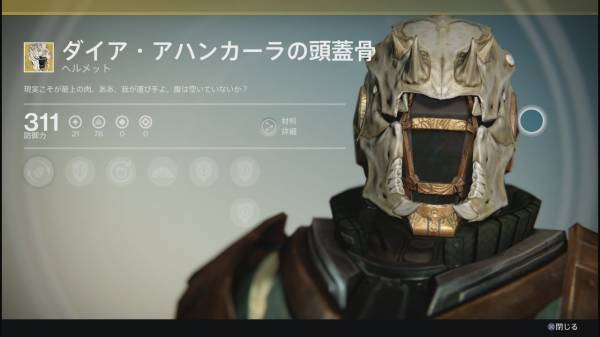 ウォーロックのエキゾチック頭防具の中では一番すき、グレネキルでスーパーチャージ回復するからサンシンでも愛用してまふ --