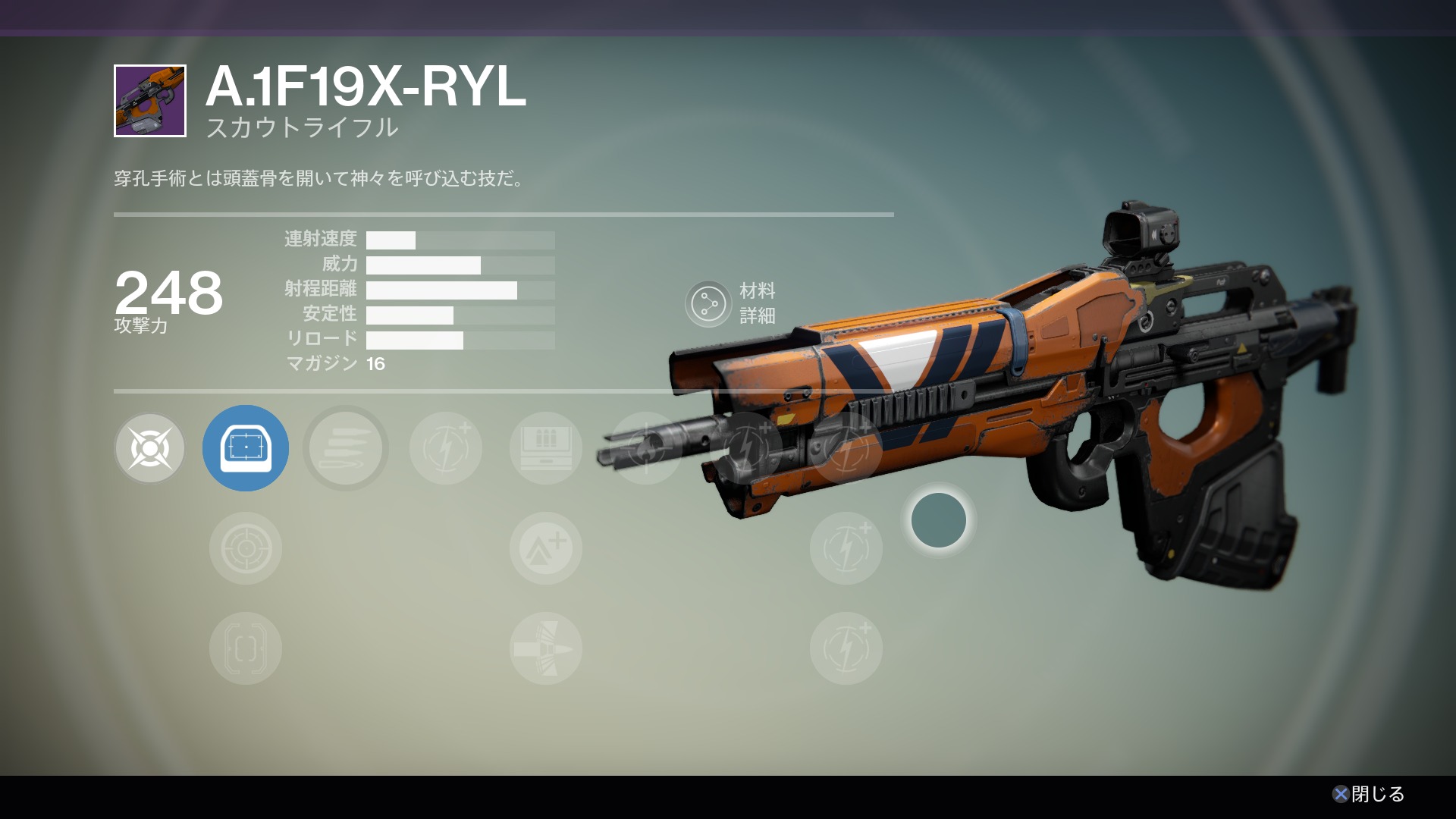 オラクルはエピローグ使えばいいからね。レイドスカウトの利点はソーラーついてること。 この銃はフィールドスカウト+ホタルっていう強力なスキルがお店で買えるのが最大の利点よ! ビジョン持ってるけどこっちのほうが好きだ --