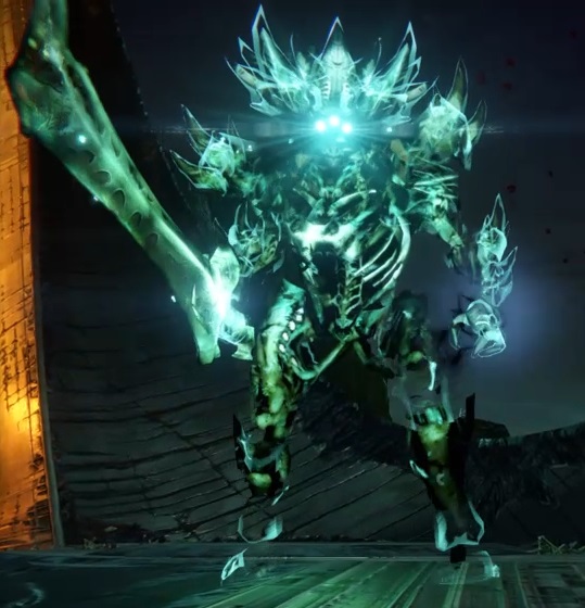 最近の出来事に対する私自身の考察 地下の暗黒に隠れる月の化物。緑色の炎に染まった空の下を歩き、史上最強のガーディアン軍を叩き切った剣を振りかざす巨大な神。 私達は奴に立ち向かわず、月を捨てる選択をした。