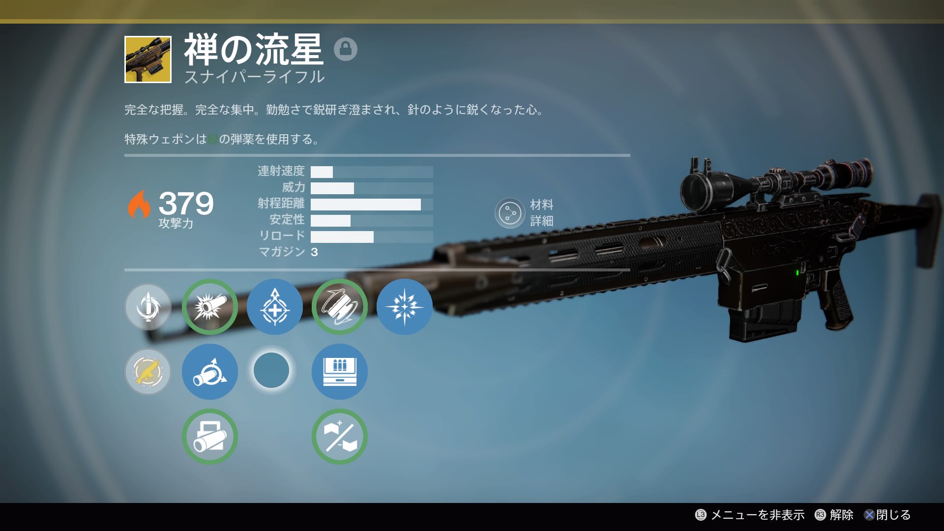 | 2特殊ウェポン | ショットガン | フュージョンライフル | スナイパーライフル | ピストル |