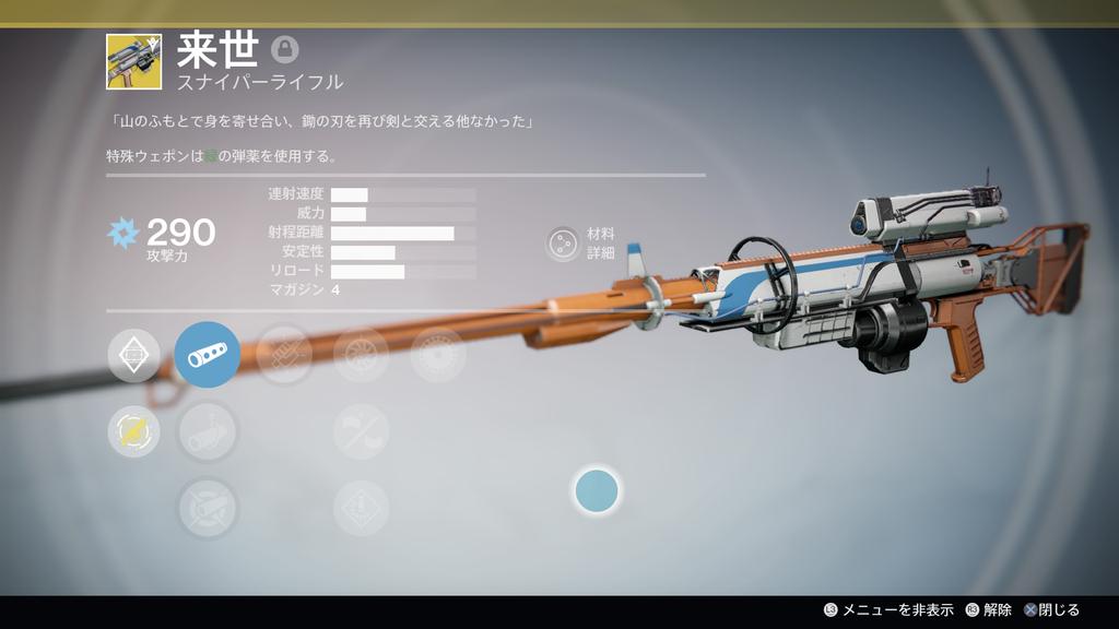 | アーク・ダメージ | スムーズ・バリスティクス | 完璧主義 | スナップショット | 眩ます光 |