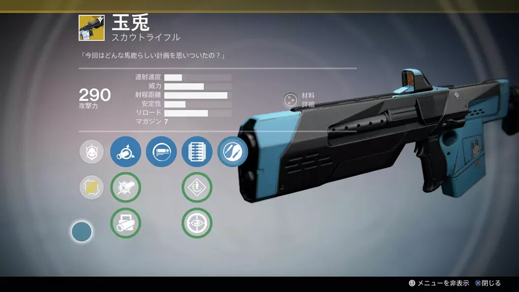 | 1プライマリウェポン | オートライフル | スカウトライフル | パルスライフル | ハンドキャノン |