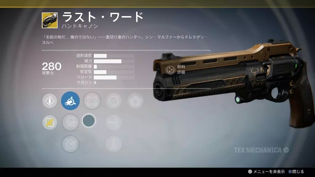 | 2特殊ウェポン | ショットガン | フュージョンライフル | スナイパーライフル | ピストル |