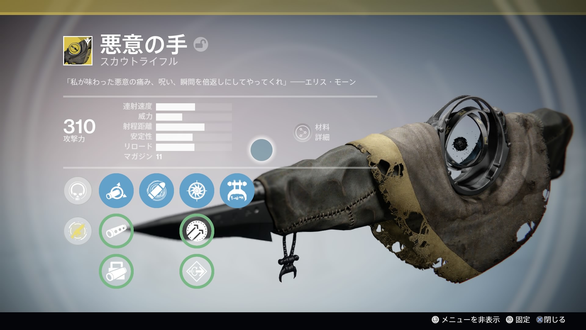 | 1プライマリウェポン | オートライフル | スカウトライフル | パルスライフル | ハンドキャノン |